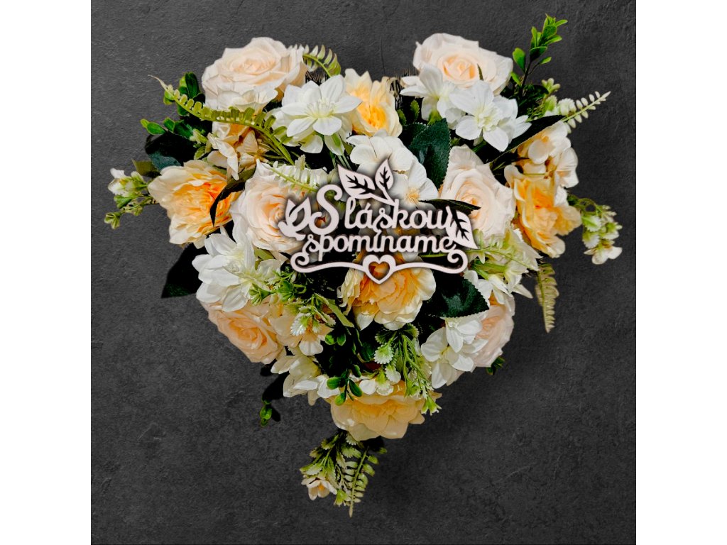 Veľké čečinové stojace srdce v betónovej miske v marhuľovej farbe. Rozmer cca 40x40cm.