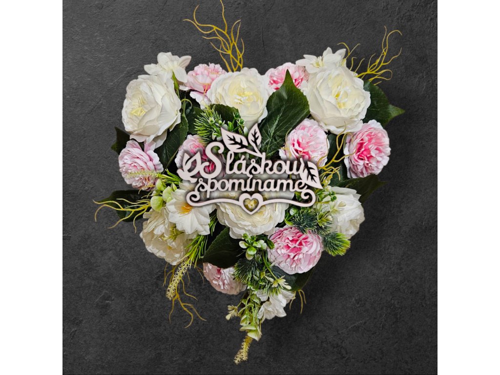 Veľké čečinové stojace srdce v betónovej miske v bielo rúžovej farbe. Rozmer cca 40x40cm.